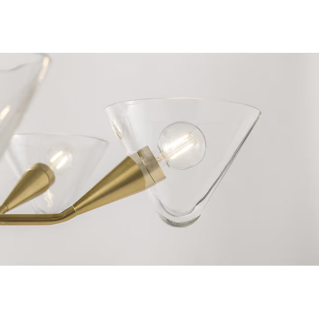 - FINISH: Aged Brass, SHADE: Clear Glass